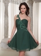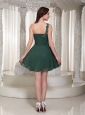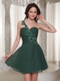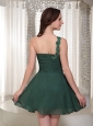 Short Peacock Green Prom / Cocktail Dress With Ruch Bodice One Shoulder Sweetheart