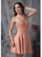 This glamorous short prom dress accents the attractive feeling. Its criss-cross straps splitting from the middle of bust accents your elegant status. The bodice is heavily ruched with fine fabric. Mini skirt gives you more sexy looking. A zipper in the back secures the dress in place and ensures a great fit. Just a fun little dress to wear for any occasion or event.