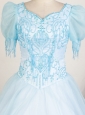 Short Sleeves and Light Blue For Fashionable Little Girl Pageant Dresses With Beading