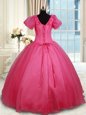 Short Sleeves Beading Lace Up Sweet 16 Dress
