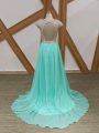 Short Sleeves Brush Train Beading Backless Evening Party Dresses