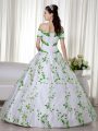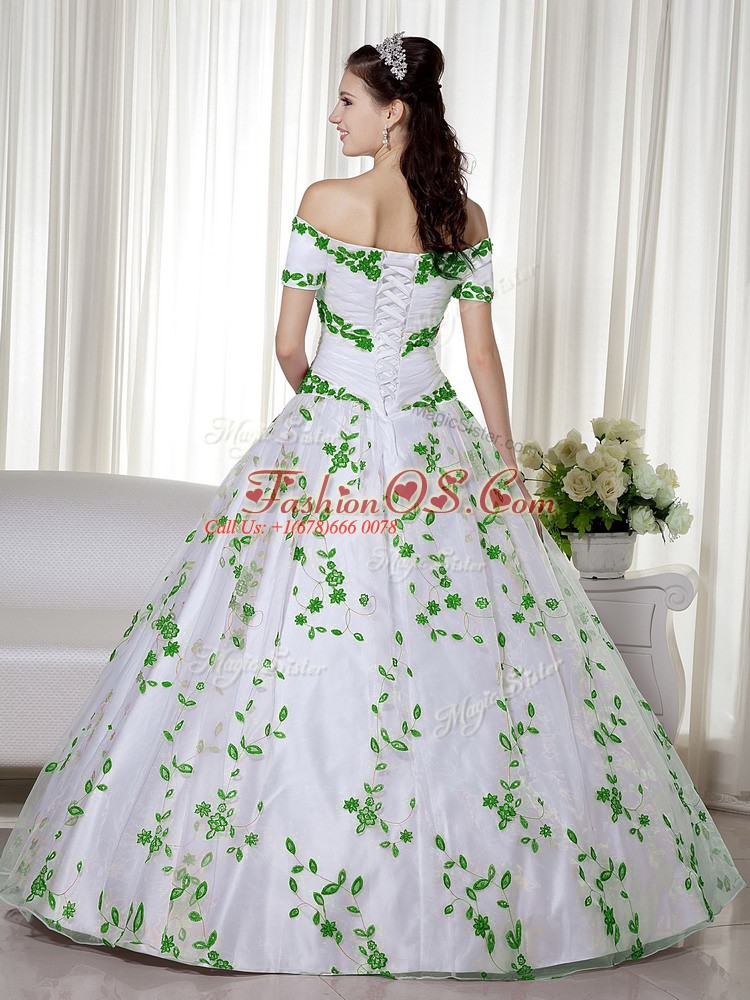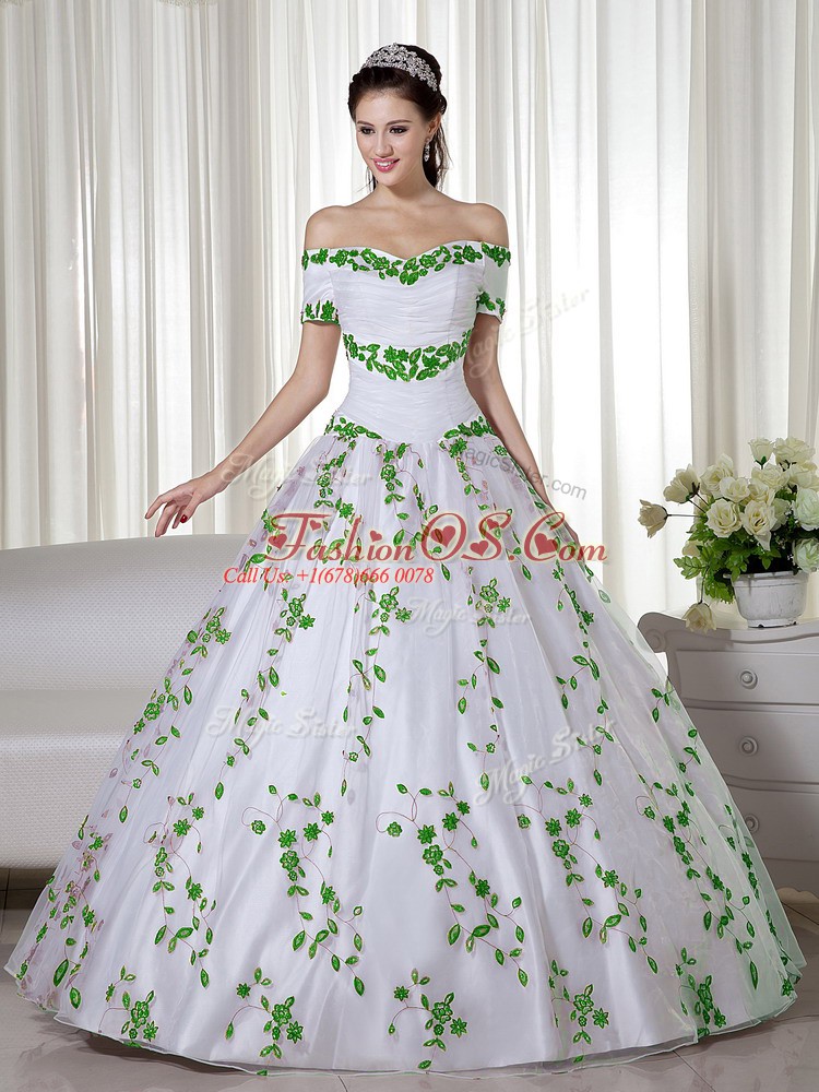 Short Sleeves Embroidery Lace Up Quince Ball Gowns
