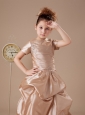 Short Sleeves Flower Girl Dress High Neck Beaded Taffeta Custom Made 2013 New Styles