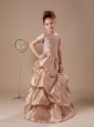 Home >  Flower Girl Dresses > Short Sleeves Flower Girl Dress High Neck Beaded Taffeta Custom Made 2013 New Styles