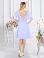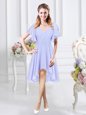 Short Sleeves High Low Ruching Zipper Bridesmaid Dress with Lavender