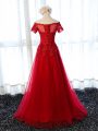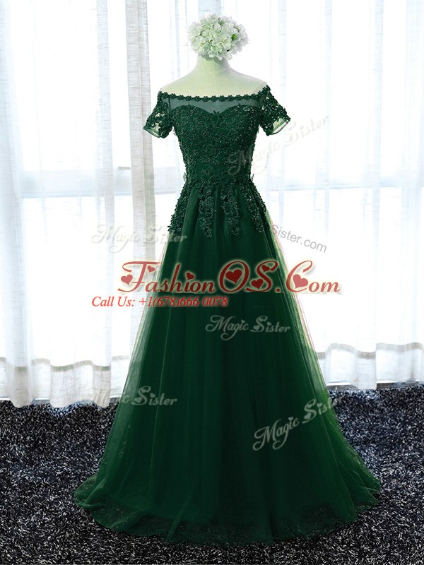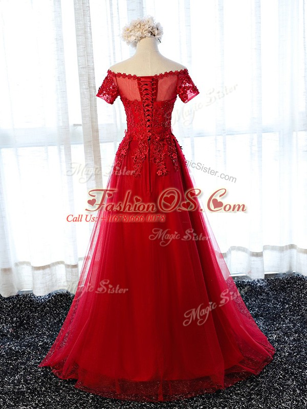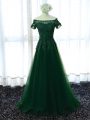 Short Sleeves Lace Up Floor Length Lace and Appliques Prom Evening Gown