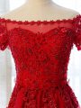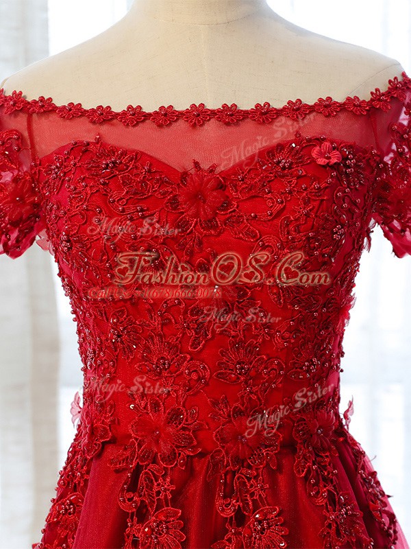 Home >  Prom Dresses >  Prom Dresses On Sale > Short Sleeves Lace Up Floor Length Lace and Appliques Prom Evening Gown