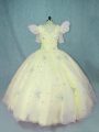 Short Sleeves Zipper Floor Length Beading 15th Birthday Dress