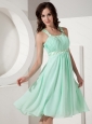 You'll look like you are floating on air as you wearing this amazing short prom dress. A fabulous chiffon evening gown with a strapless ruched bodice that features two sparkle sequin band on the halter top neckline and at the waist.