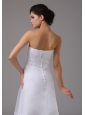 People will lavish you with attention when you wear this fabulous wedding dress! The sweet bodice adorned strapless neckline and pleated bust. A wide lace waistband emphasizes the figure-hugging waist.The skirt flows out from the waist line and chic lace decorated the hem. The skirt flows beautifully with a loose fit that will make it easy to dance the night away. A hidden zipper makes for easy off and on and a row of buttons add more interesting.