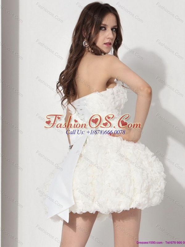 Short White Strapless Ruffled Wedding Dresses with Bowknot