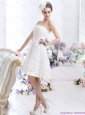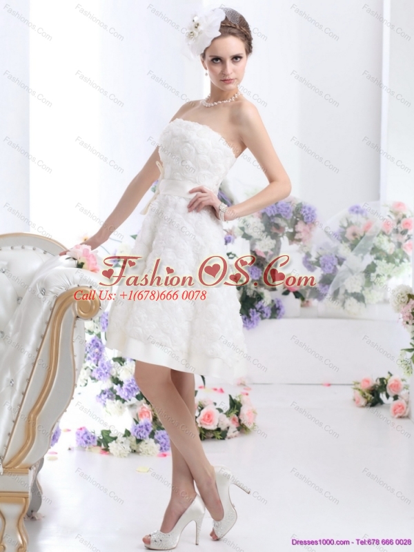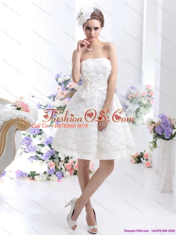 Short White Strapless Wedding Dresses with Bownot and Rolling Fowers