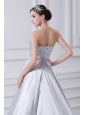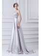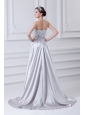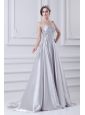 Silver A-line Sweetheart Taffeta Beading Brush Train Prom Dress