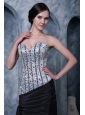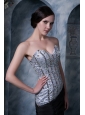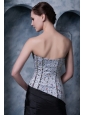Home >  Evening Dresses > Silver and Black Evening Dress A-line Sweetheart Elastic Woven Satin Beading Brush Train