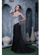 Silver and Black Evening Dress A-line Sweetheart Elastic Woven Satin Beading Brush Train
