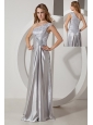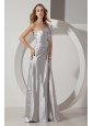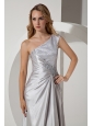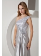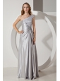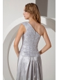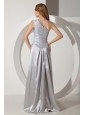 Silver Column One Shoulder Beading Prom Dress Floor-length Taffeta