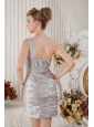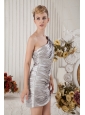 Silver Column One Shoulder Cocktail Dress Chiffon Ruch Mini-length
