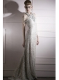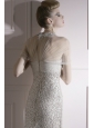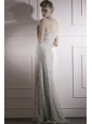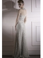 Silver Column / Sheath Scoop Brush Train Sequins Lace and Tulle Prom / Evening Dress