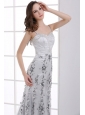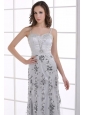 Silver Column Straps Beading and Appliques Prom Dress for Spring