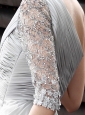 The top of this prom dress is in wrapping pattern which can show the traditional and elegant elements. A unique one lace sleeve makes the dress out of the ordinary.Pleated wrapped bust and waistline can show off you attractive and sexy figure perfectly. Floor length skirt gives you good movement and it suits for both casual and formal occasion.