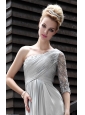 Silver Empire One Shoulder Floor-length Chiffon Appliques Prom Dress
