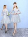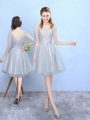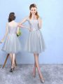 Silver Tulle Lace Up V-neck Sleeveless Knee Length Bridesmaids Dress Lace