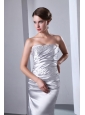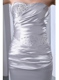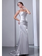 Silver Wedding Dress Column Strapless Beading Brush Train Elastic Wove Satin