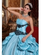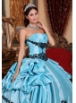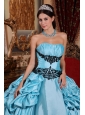 Simpel Baby Blue and Black Sweet 16 Dress Strapless Taffeta Appliques Ball Gown