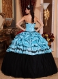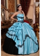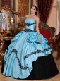Home >  Quinceanera Dresses >  Sweet 16 Dresses > Simpel Baby Blue and Black Sweet 16 Dress Strapless Taffeta Appliques Ball Gown