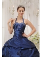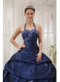 Simpel Navy Blue Quinceanera Dress Halter Taffeta Appliques Ball Gown