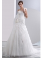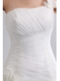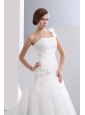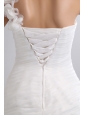 Home >  Wedding Dresses >  Low Cost Wedding Dresses > Simple A-line One Shoulder Low Cost Wedding Dress Chapel Train Taffeta and Organza Hand Made Flowers Ruch