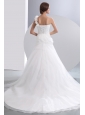 Simple A-line One Shoulder Low Cost Wedding Dress Chapel Train Taffeta and Organza Hand Made Flowers Ruch