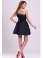 Simple A-line One Shoulder Navy Blue Mini-length Prom Dress with Beading