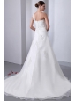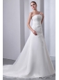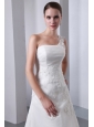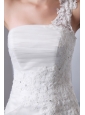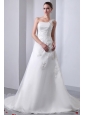 Simple A-line One Shoulder Wedding Dress Appliques With Beading Chapel Train Satin and Organza
