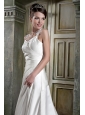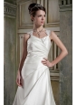 Simple A-Line / Princess Straps Court Train Satin Pleat Wedding Dress