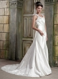 Home >  Wedding Dresses >  Affordable Wedding Dresses > Simple A-Line / Princess Straps Court Train Satin Pleat Wedding Dress