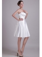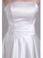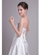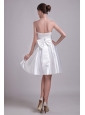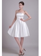 Simple A-line Strapless Knee-length Elastic Wove Satin Bowknot Wedding Dress