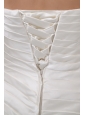 Simple and grace!Asymmetrical ruching shape the bodice and tuck in the midriff beneath a swirl of ruching that paints a precision profile. Dropped waist expanding to loose folds that reveal a gathered, full-length underskirt beneath, and bustling in lovely scrunched tiers down the back.Lace-up accented with zipper-up back and chaple trrain add the elegence to the dress.