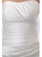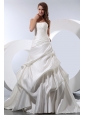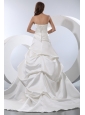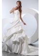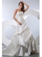 Simple A-line Strapless Low Cost Wedding Dress Chapel Train Satin and Taffeta Pick-ups