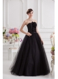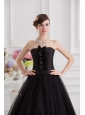 Simple A-line Strapless Tulle Black Quinceanera Dress with Ruffles