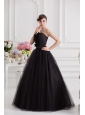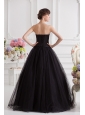 Home >  Quinceanera Dresses >  Luxurious Quinceanera Dresses > Simple A-line Strapless Tulle Black Quinceanera Dress with Ruffles