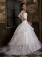Home >  Wedding Dresses >  Ball Gown Wedding Dresses > Simple A-line Strapless Wedding Dress Sweep Train Taffeta and Organza Hand Made Flower