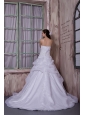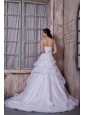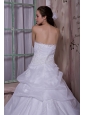 Simple A-line Strapless Wedding Dress Taffeta and Organza Chapel Train Appliques
