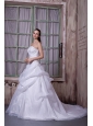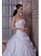 Home >  Wedding Dresses >  Ball Gown Wedding Dresses > Simple A-line Strapless Wedding Dress Taffeta and Organza Chapel Train Appliques