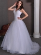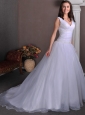 Home >  Wedding Dresses >  Beautiful Wedding Dresses > Simple A-line V-neck Ruch and Beading Wedding Dress Court Train Taffeta and Tulle