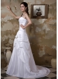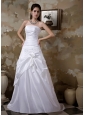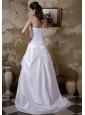 Simple A-line Wedding Dress Strapless Hand Made Flower Brush Train Taffeta