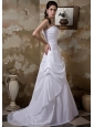 Home >  Wedding Dresses >  Affordable Wedding Dresses > Simple A-line Wedding Dress Strapless Hand Made Flower Brush Train Taffeta