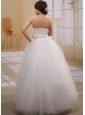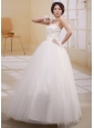Simple Ball Gown Beaded Decorate Bust 2013 Wedding Dress With Bow Tulle