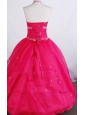 Beading and Appliques Luxurious Straps Ball Gown Off The Shoulder Neckline Floor-Length Red Little Girl Pageant Dresses
