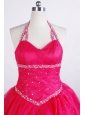 The beautiful sweetheart halter top neckline flower girl dress stands out with the beading embellished on the halter top straps, around the waist and under the breast, the beading also scatters on the bodice and the full skirt. The lace up back completes the look.
